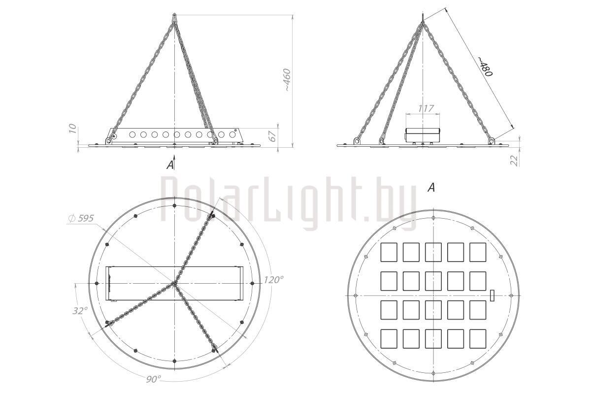 Светильники серии KEDR ССП предназначены для подвесного монтажа, для обеспечения безопасности установки светильников на корпусах предусмотрены места для установки страховочных тросов.