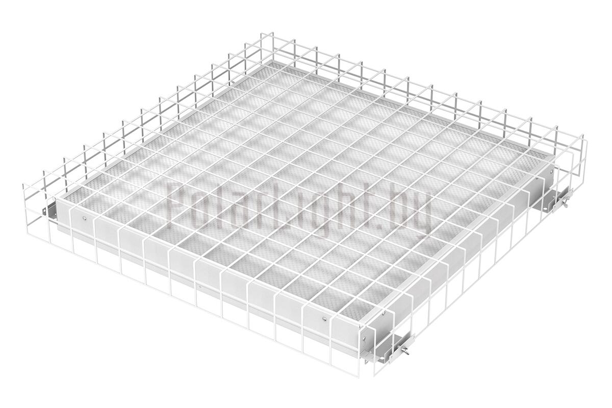 Серия светильников ОФИС с защитной металлической решеткой 40 Вт (до 4100 лм) для монтажа на потолки высотой до 5 м, либо для помещений с повышенными требованиями к освещенности.